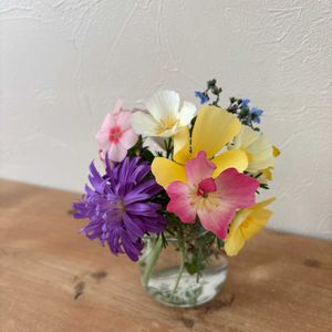 去年の夏に訪れた上野ファームさんで購入した野花の種より…🌱 カラフルな野花が次々に咲いてます…❤︎ 2枚目は今ちょうど見頃な紫アスター💜 遠くからでも凄く目立ってます…😆 ピンクのハナビシソウ🩷 めっちゃカワイイ〜!