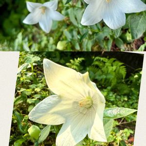 やっぱり 白い色は夏色🤍 ① 紫色に続いて 白い桔梗も咲きました🤍 ② 名前もはっきりわからない 家の庭木 奥の方に白いベル型の花が 少しだけ… これまでも咲いていたのかも 調べてみました シャシャンボ(小小坊)でしょうか