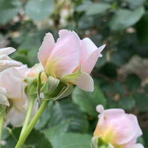 こんにちは♪ 雨が降る前の花壇♡ ①② ラベンダー フォーエバーブルー イングリッシュラベンダー ベロニカ ロイヤルキャンドル ロータス ブリムストーン アブチロン ホワイト・キング ユーフォルビア クラリスハワード フェリシア ③~⑤ バラ パニエ 花友サンのパニエを見て一目惚れして昨年、購入した子が開花♡ しかし…パニエなのか⁈ パニエに見えない… ん?(๑•ૅㅁ•๑) 何故だろう… 栄養不足? やっぱり私にバラはまだ難しい。。