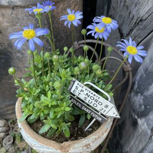 心穏やかに♡ 今日は風もなく暖かい日でした☀️ 草花も少しずつ芽吹き始め🌱 春が待ち遠しいです🌸 フランネルさん🤍 小花はブラックネモフィラと クモマグサで寄せ植え🪴 ブルーデージーも蕾が いっぱい💙 可愛らしく咲き始めました🥰