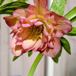 クリスマスローズ 一昨年頂いたダブルの アプリコット色の花です。 今年初めて咲きました。