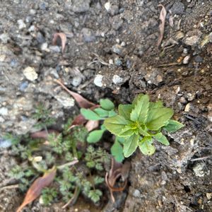 栃木県で撮影しました。庭に自然と生えてきた植物です。わかりづらいですが、1番手前のものです。 近くに金魚草があるため、金魚草の芽だったらいいなと考えています。