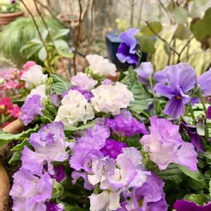 #ペルクレア 淡い紫色気品のある感じですね✨ 寒さで、花弁が痛んでたのが和らいだので綺麗に咲き始めてきました。 中の光が当たらない黄色い葉は、早めに取った方が良いです。 暖かくなるとビオラパンジーに出てくるので、時々チェックしています。