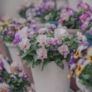 『もの思い』『私を思って』。「もの思い」は、傾いて咲く姿が、人がもの思いにふけるように見えることにちなむといわれています。このほかに色別の花言葉もあります。寒さにも強く、寄せ植えにも適した植物です。