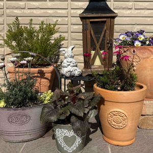 少し暖かな日を浴びて嬉しそうな鉢植えの花たち🤗