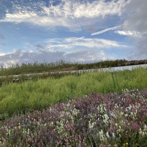 おはようございます😊 秋晴れ☀ 今日も空が綺麗💙☁🩵 ココが何処だか忘れるほど…長閑な景色に写りました♡ 「カルーナ」真夏の酷暑にも負けずに咲いていました♡ 一週間前の大阪の空💙☁ 2枚目も…🚶 同じ場所から…見上げた 「千日紅」と空🩵 何処だと思います? 3枚目… そう…ココは万博会場 「大屋根リング」の上⤴ 「多様でありながらひとつ」という万博のテーマを象徴するこのリングは、 日本の伝統的な建築技術と現代技術を融合して作られました。 ギネス世界記録にも 「最大の木造建築物」として認定されています。 大屋根リングは、単なる建築物としてだけでなく、空と海、そして世界と人をつなぐ体験を提供してくれる場所です。 一周2キロも有る遊歩道は この日 24万人を上回った入場者で2段のリングが手を繋いでる様な人の輪が出来ていました♡ 床も可愛い♡💙♥️ ✋ ♡(•ω•˵)ﻌ(˵•ω•)♡♡(•ω•˵)ﻌ(˵•ω•)♡ 実際皆んなで手を繋いだら2キロの輪◎面白いでしょうネ♡ᕷ˖° 4枚目…上から観る 入れなかった 「パビリオン🥲」達 でも空が綺麗✦🌆 海の側では遠く明石海峡大橋も見えました👀 5枚目…17:27分の 大屋根リングから観た景色💙 帰りの駅の混雑を考えなければいつまでも観ていたい景色だったけれど… ♡꒰ღ˘◡˘ღ꒱ 結局この日…二万歩♡歩いてました😅💦 光のショーを観て…今日のドローンは中止ですと言うアナウンスを聞き そろそろ体力も限界💦 会場を後にしたのでした♡