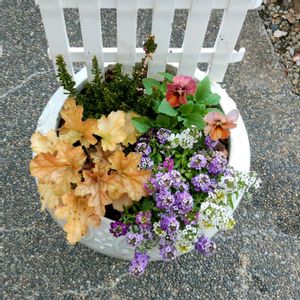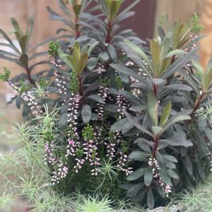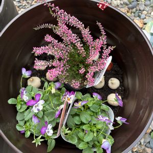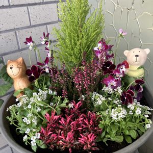 冬の寄せ植え🪴🌼 GSを見てたら、やりたくなって、昨日ビオラさんを買ってきました😄 久しぶりに寄せ植えをしたら、楽しかったよ〜 くせになるなあ🤭 真ん中に、クリスマスらしく🌲を! その横に、大好きなバニーイヤーズ🐰🐰 小輪パンジー カルーナ アキランサス アリッサム 両側横には、可愛いピックがあったので2つブスっと挿しました😆 玄関先が、枯れかかってるみたいな花ばかりだったので、明るくよみがえりました😍🙌