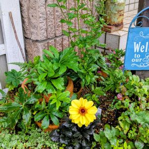 こんにちは😊 小雨の降るちょっと肌寒い 日曜日です☔️ ①ポスト下のダリアが、雨に濡れてひっそり咲いてます。 ②この間、ストックとカルーナ、ビオラ、アリッサムで寄せ植えをしました。 雨に濡れたカルーナが綺麗です😊 見て下さりありがとう🤗