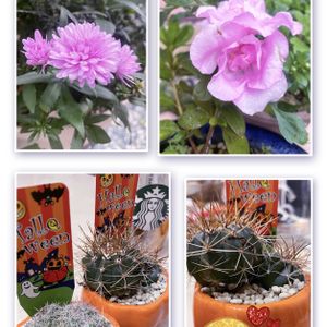 ♥️今日の推し花とサボテン(∩´∀`∩)💕右上アザレアさんめっちゃ可愛い💗(>᎑<`๑)💓 下のサボテン🌵はハロウインでお礼に頂きました- ̗̀ ( ˶'ᵕ'˶) ̖́- でも名前が…白いサボテンは銀手毬かと❓……右のがわからないですね( ˙👄˙ )💦💦 お花咲くかな🌸…ワクワク✩°。⋆⸜(* ॑꒳ ॑* )⸝✩°。⋆ドキドキ