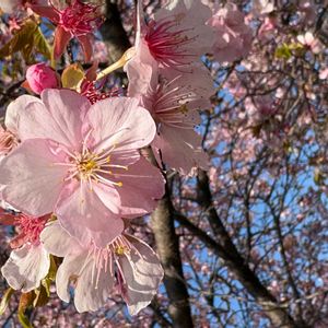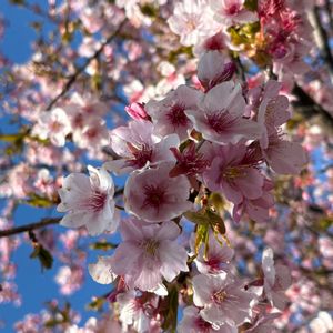 上野公園にて 今満開なのは、カンヒザクラ🌸 濃いピンクの花びらがかわいい 春の始まりって感じがしますね🌸