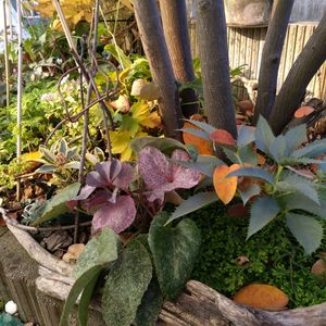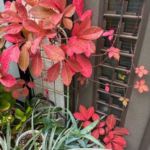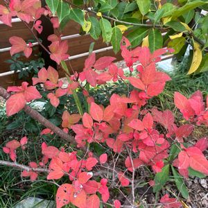 昨日は朝からずっと雨で ヘンリーヅタの色がしっとり鮮やかです。 ジュズサンゴ 大きくなったので実が沢山なっています。 イワヨメナ 咲き進んできました。 ヌルデやジューンベリーが黄葉して落葉してきました。 ❇︎ハナミズキは殆ど落葉しました。
