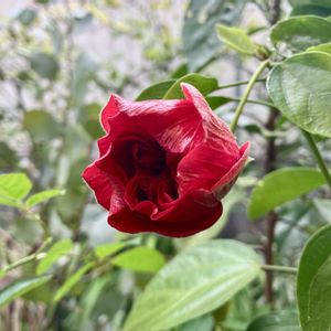 バラのように咲くハイビスカス 落ちそうでヒヤヒヤ❶❷ また冬越しできたらと..ペチュニア❸ ジューンベリーとうろこ雲❹ 定番の秋色 紫陽花マジカル❺ 🏷️真っ赤な火曜日 🏷️今日の庭から