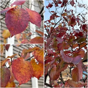 今日のお買い物帰りの ご近所の 秋色になった葉 ① ハナミズキ ② アジサイ ③ ジューンベリー