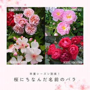 . \ 卒業シーズン到来! / 桜にちなんだ名前のバラ 春風に揺れる桜を見るたびに 学生時代の思い出や、 新しい未来へと歩み始めた春の日を 思い出します✨ 今日は、卒業シーズンの今だからこそ届けたい、 “桜”にちなんだ名前のバラをご紹介します🌸 . . 🌸桜衣(さくらごろも)👘 オレンジをほんのり含んだ桜色の花が、 株いっぱいにあふれて咲くつるバラです✨ 短い枝にも花をつけるため、 アーチやフェンスなどさまざまな仕立てで楽しめます♪ まるで桜色の衣をまとったかのような華やかな姿から 『桜衣(さくらごろも)』と名付けられました👘🌸 . . 🌸サクラ クリスタル💎 透きとおるような桜ピンクの花が とっても可愛らしい品種です🌸 春の光を浴びるたび、 やわらかな花色がいっそう輝きを増します✨ 春の花付きがよく、 しなやかな枝はしだれるように伸び、 風に揺れる姿もまた魅力のひとつ。 雨の時期には薬剤散布をすることで、 葉を保落とさずに秋にも咲きます♪ . . 🌸ピンク サクリーナ💗 桜を思わせる、ハート形の花弁。 日本の桜に敬意を表し、 フランス・メイアン社が “桜色のバラ”という意味の 「サクリーナ」と命名しました🌸 ほんのり紅をさしたような濃淡と、 フクシャピンクのおしべが 上品なアクセントになります✨ 1房に1~15輪と花付きがよく、 次々と新しい花を咲かせます。 照り葉で黒星病に強いです。 . . 🌸チェリー ボニカ®🍒 ころんと丸い小ぶりの花が、 愛らしく咲き続けます🍒 樹形はこんもりとまとまり、 手間をかけずとも絶え間なく花を咲かせます♪ うどんこ病や黒星病にも非常に強く、 バラ栽培初心者の方や、植栽にもおすすめです🌹 . . . 出会いと別れが交差する季節。 桜の名を持つバラが、 新しい一歩を踏み出すすべての人の背中を そっと押してくれますように…🌸✨ ・*:..。o○゚・*:..。o○゚・*:..。o○゚ .