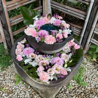 🏷️木曜日は桃色🩷 ① ガレージ下 メダカ鉢の横で ピンク🩷のサザンクロス 咲いています かわいな😍 ②③ さぬきフラワーガーデン 温室のストレプトカーパス こんなに いっぱい色があるのね🧶🩷🔮💜 今日も雨です☔