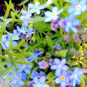 おはようございます🌞 スギ花粉も今がピークとか天気予報士が言ってましたが、2週間は、続くと言ってました🤧😆 今年もばら撒きワスレナグサ可愛い😍でしょう! 暖かくなったせいなのか、肥料切れなのか色変してます😆