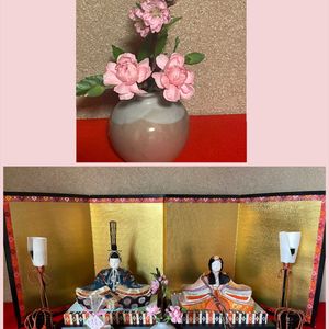 おはようございます☔️☁️ 今日はお雛祭り🎎 我が家のお雛様達です。 🏷️今日のお花 🍀モモ カーネーション ネコヤナギ