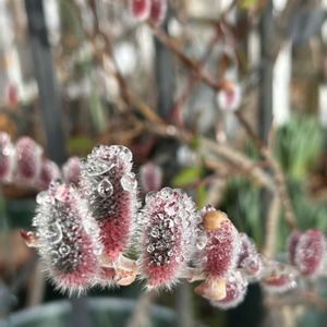 ピンクネコヤナギ💗 最初の挿し木の子が駄目になりそうだったので、更に挿し木で更新した子です🤗🌿 いつの間にか帽子を脱ぎ、もふもふが現れていました🎶