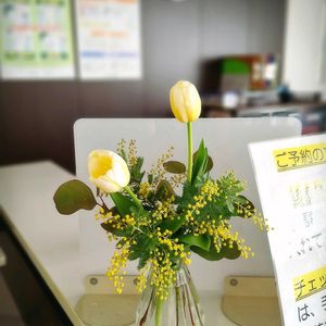 病院の生け花 春の草木・花が続々と この時期は芽吹く前の枝物を探すのが好きです👀✨ 何度か生けてるうちに芽吹いてくれたら、超嬉しい😆💓