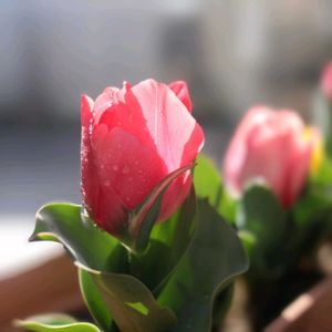 イベントでもらったチューリップ🌷がちゃんと咲きました。🙌🎵 茎が短いのはなんで?🐧💦