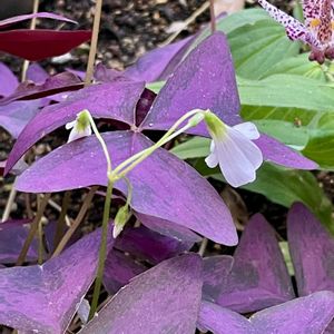 今日のお花 オキザリス 友人宅のオキザリス トライアングラリス 紫の舞 🏷️今日のお花 斑入り石蕗 ホトトギス 文化祭打ち上げ セットグー チューリップローズ🌹🥀 羽田土産