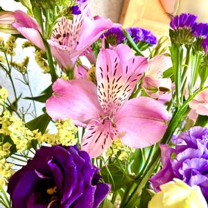こんにちは😃 今日も寒い1日でした❄️ 昨日は風花が舞い、細雪は 「ささめゆき」も降っていました❄️❄️❄️ 🏷️ 月曜日は玄関の花 🏷️ 花咲く乙女たち♡ ◎ アルストロメリア (百合水仙(ゆりずいせん)) ◎ スターチス 学名:Limonium 和名:ハナハマサジ(L. sinuatum)、ニワハナビ、ヒロハノハマサジ(L. latifolium) その他の名前:宿根スターチス、チース 科名 / 属名:イソマツ科 / イソマツ属 玄関はとってもとっても綺麗なお花さんがいっぱいですo(^▽^)o🌸💐🌼