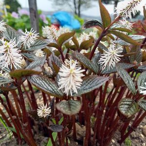 樹高は6m程度で、2.5cm程の線形の葉を多数着け、夏には5cm程のブラシ状の白い花が咲きます。別名