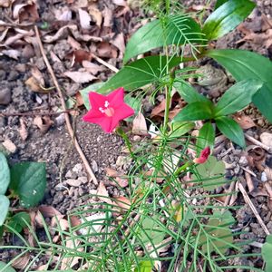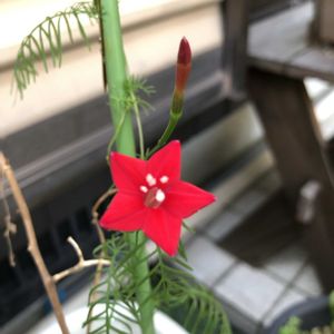放置していたミニトマトの プランターにポツンと ルコウソウのかわいいお花が 咲いていました