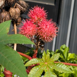 1️⃣昨日クリニックまで歩いて行ったところ、見知らぬ植物に出会いました 調べたらトウゴマの実でした。これから採れる油がヒマシ油だそうです🤩 2️⃣🐭の顔に似たクフェア・プリティマウス タイニーマウスとも 3️⃣深紅のルコウソウ 4️⃣ヒガンバナがまだ咲いていました 5️⃣猩々草サマーポインセチアとも呼びます 🏷️真っ赤な火曜日