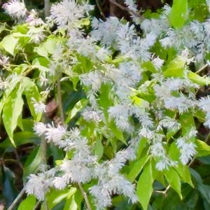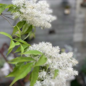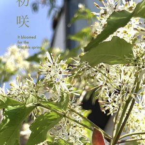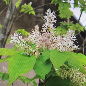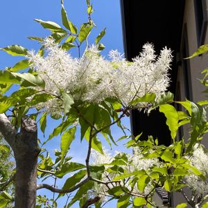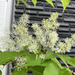 5年に一度しか 咲かないとも言われている アオダモの花 玄関に植樹して3年… フワフワの白い糸状の花 初めて咲きました