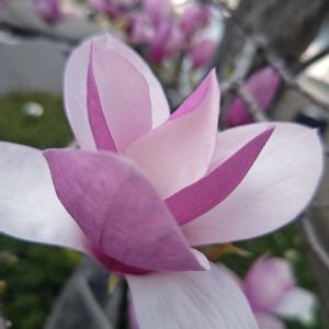 おはようございます😊 今日のお花🏷️のモクレン(紫モクレン)。 (2026/3/27撮影) 3・4枚め、スタイリッシュな外観の工務店のエントランスの植栽。見上げると、真っ白な花が綺麗でした。アオダモでしょうか⁉️(2026/4/8) 今日は大谷選手、登板予定。二刀流での登板なのか🤔投手専念なのか⁉️スタメン発表が気になります。