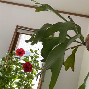 観葉を室内へ入れました 今年手に入れたドリナリア 枯葉のような部分はシールドと呼ばれているらしいです かっこよい!! ビカクシダたちも一回り大きくなって室内に戻って、部屋の圧迫感が半端ないです笑