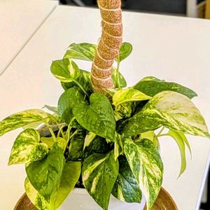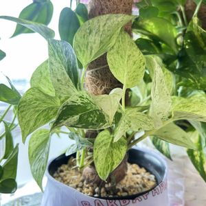 ポトス•エンジョイによく似ていてマーブルクイーンから突然変異したポトス•パールズ&ジェイド🍀 グリーンの散り斑が入るところがエンジョイとは違うところだと思います💚🥰 3本だけモスポールに登らせてみました🤗🌿