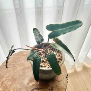 Philodendron Spiritus Sancti 💕 2枚目が親株です✨お迎えしてから2年と4ヶ月…ついにこの子が親株になりました✨今朝子株となる部分を切り取って植えかえました💕