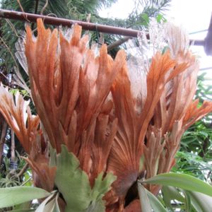 手柄山温室植物園にて ①②③綺麗なビカクシダ😍 3枚目は中を覗いてみたくて手を伸ばしてスマホをかざして見ましたが😅 ④アルカンタレア 植物園に行ったら知らない植物に出逢えますね😆 ⑤トゲトゲの茎?に似合わない可愛らしいお花🤭