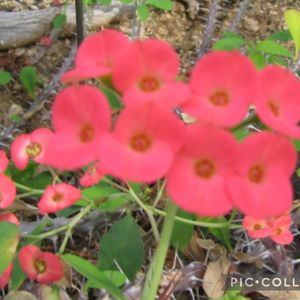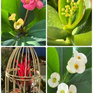 ハナキリン咲いてました😊 右上のは今年の真夏に撮ったハナキリンで 下のが現在咲いているハナキリン 同じ木なんですが 夏と色が変わるるんですね🤣