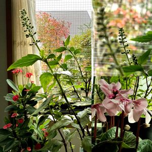 pic1 ダイニングルームの窓辺 南側なので、冬季は大混雑です♪ ねこのひげ おつとめ品で¥100でした。 室内なら越冬出来ると聞いたので 鉢増しして室内に入れたら、 なんと蕾がたくさん出て来ました❣️ これからでも咲いてくれるのかなぁ🤭 楽しみです♪😋 pic2 自宅庭のムベと富有柿と渋柿 葡萄棚がほぼ占領され、 ウッドデッキの屋根まで蔓が伸びて 他の木を枯らすほど樹勢が強いと言われる意味が分かります😥 思い切って、葡萄棚に届かないくらいに🪚✂️短く剪定しました😔 剪定した後に、収穫したムベの実を主人と食べました。 昔、食べたきり、何年も 食わず嫌いしていましたが タネだらけで食べる所は少ないけど 甘く美味しかったです♪ 不老長寿の果物とか…歳を重ねると美味しくなるのかな?🤭💕 富有柿の根元に勝手に生えて 大きくなった柿の木は 小さな実の渋柿でした♪ 早速、干し柿にしてみました。 今年は7つ、去年はひとつだけでしたが、 美味しい干し柿になりました♪ 冬の楽しみが増えました😋 pic3〜4 零れ種からのルッコラ。 わっさわさに育ちました! 早どりのキャベツは見事な虫食いに🐛🐛🐛 酢を掛けたくらいでは効き目なし! 早めにネットを被せれば良かった! 後の祭り…😓 奇跡的に10株中2株は食べれそう🤣 pic5 早生玉ねぎと下仁田ネギ 太めの良い苗が手に入りましたので 植え付けしました♪ 下仁田ネギは今頃植えたら 収穫はいつ頃になるんでしょう? 🤔