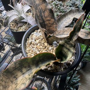 サンスベリアが枯れてきてしまったのですが。どうしたらいいのでしょうか? お水は冬なのでやり過ぎないよう1/5程度をキープして、たまにtable plants waterシュッシュしていたのですが...