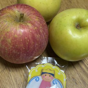 実家からもらった魚津りんご🍎 職場で頂いたアイシングクッキー🍪 見切り品の青リンゴ🍏とき 皮を剥いたら黄緑が分からなくなったけど、 2枚目)皿のカットりんごは全部とき。