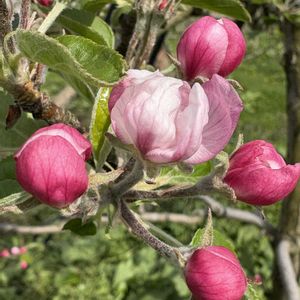 🌸今日のお花🌸 🍎リンゴ🍏 1️⃣リンゴ(王林)の蕾 蕾もピンクで可愛い💓💓💓 2️⃣リンゴ(王林)の中心花🌸 中心花は立派なリンゴになるので 側花を全て落とします✂️ 3️⃣リンゴ(フジ)のお花🌸 4️⃣リンゴ(紅玉)のお花🌸 近くの養蜂園からミツバチさん🐝 大忙しです❣️ 5️⃣リンゴ(紅玉) 9月上旬のpic その1ヶ月後には お尻まで真っ赤になった紅玉を収穫 今年のお花はGW明けの5月 色々な果物のお花の花盛り🌸 テンション上がる⤴️季節です💓 今、11月はサンふじ収穫に必死😆 リンゴは果樹の中でも一年通して 手の掛かる果物🍎🍏 味わって皮ごといただきま〜す😋
