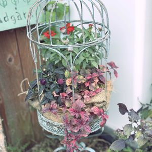 ①②③ハロウィン風🎃寄せ植え作りました。 20年くらい前の手作りスティックを引っ張り出してきて挿したらちょっとそれっぽくなったかしら? 10月にモリモリになってくれる事を願って🙏 ④全体の様子。