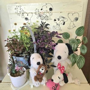 おはようさん🤗 🏷毎月2日はスヌーピーの日 参加させて頂きます。 先月は手提げの 寄せ植えだけを投稿しました。 ガイラルディアもまだまだ咲いてます。 トウガラシはパープルの実が可愛いくなってきました。 後ろのワイヤクラフトも、ぬいぐるみも… 飾れるだけ出して… 賑やかです…(*´˘`*) 🩷を持ってる ベルちゃんが可愛いでしょ〜(*´`*) 𓂃 𓈒𓏸𓋜 . *𓂃𓈒𓏸ꕤ*゚𓂃 𓈒𓏸 𓋜 . *𓂃𓈒𓏸 ꕤ*゚𓂃 テクテク🚶♀8,459歩でした