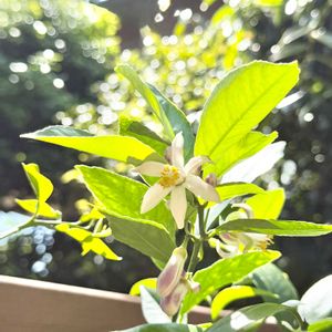 🍋マイヤーレモンのお花 お迎えしてから初めての開花です( *´艸`)❀ レモンのお花って白に少し紫で こんなに可愛いのですね〜🤍💜 ❷旦那のご所望でカボスさんもお迎えしました。 ただいま、レモンさんとカボスさん 新芽がキラキラしております🌱✨ ❸❹そうなると、彼女たちがやってきます🦋 ごめんね〜💦 まだまだ🌳が小さいからさ… 卵は毎日パトロールして(っ'-' )╮ =͟͟͞͞🥚 ❺あんぱんち中の柿さん。 先に出た黄色い🌱は、無事に緑になりました(*´꒳`*)ヨカッタ♡