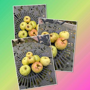 庭じまい 寒くて、☔雨が降ってきたり 中々進みません😅 ①🍏リンゴの収穫7個食べられる感じの実は有りません😿 ②収穫した🍅トマトと🍏リンゴ 🍅食べられそうなのは、5~6個 残りの青いトマトは、ピクルスにします🤤 ③④ツルウメモドキかな? ガーデン入り口アーチ横お隣の雪避け柵の所に有るのを見つけました 🔴赤くて可愛いです😸💕