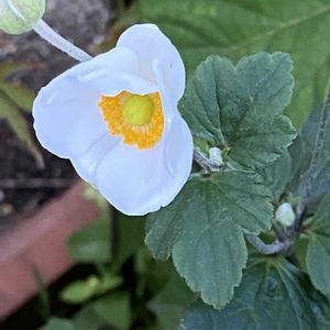 おはようございます 寒い朝 見つけました シュウメイギク あとはベランダのナス🍆トマト🍅