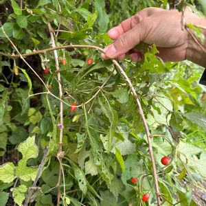 🍅 💂🏻トマト生りますか? 👧どうでしょう 撮影日10月29日 植えた記憶はないのでこぼれ種? この時期では赤く熟すのに積算温度が足らないなー せめて 🟢実が生るのを楽しみにします 🏷️水曜どうでしょう