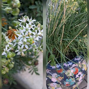 画像1/日々草 種が詰まった鞘! もう少し茶色くなったら種採取してみます♪ 画像2/ユリオプスデージー 散歩道で… 画像3/タチアワユキセンダングサ? 散歩道で… 画像4/ニラの種 こぼれ種で増えるから放ったらかしですが、種を採ってみました〜 横から見ると♡ 3つのお部屋に3粒の種がありました。 画像5/今日の収穫
