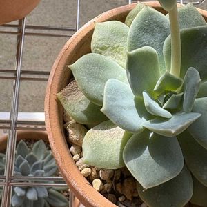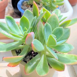 😱💦 油断してた〰︎😭 ①pic:エケベリア・ファンクィーンさん👸 これは火傷を負ってしまったのでしょうか…😢 お盆に雨や曇りの日が続いていたのもあって、遮光ネットは物干し竿にかけてはいたものの、上部のみで、下まで垂れ下げていなかったのです… そして今日まで、日差しが強くても、なんとか大丈夫かなぁ〜?なんて安易に考えてました😭 お気に入りのエケベリアだけにショックも大きく😞 甘かった自分、反省です。。。 ②pic:エケベリア・ルエラさん❤️ 春先だったか、、、ホムセンで救出。 ぷくぷく感はなく痩せてはいますが元気です😊 エッジが赤いのがいいですね❣️ ③pic:ピンクルビー♥️さん ツヤ感が好き🥰 だんだんと締まってきて、赤みが出てきました🤗 ④pic:センペルさんとハオさんの寄せ植え💚 センペルさんが増えてきて嬉しい☺️ まだまだ小さいですが、元気で何より🫶 まだまだ、遮光にも気をつけていないとですねー💦