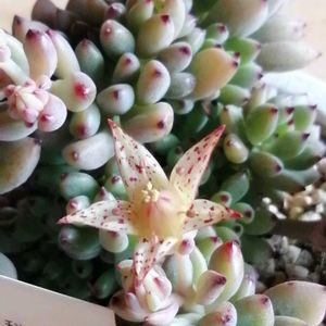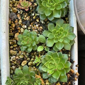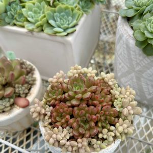 おはようございます😃 急に寒くなってびっくり🫢 でもまた秋が戻って来るみたいなので安心😮💨せっかく植え替えがんばってるのにー少しでも成長させたい気持ちが😅 終わりに近づいて来たけど、まだ残ってる💦 上からエレガンスさん分頭してますね😆となりは クラッスラさんの寄せ植えロゲルシー・ワテルエイメリー・ラージフォームさんかな緑ですが、寒さで染まるかな👀 下は姫秀麗さん手前と奥で色違います別の鉢を丼にしました 鉢減らしたくて☺️となりは虹の玉さんもりもりしてますこの子も赤くなるのが楽しみですね♪ 2枚目は植え替えすぐお花咲いて🌼るルビネさん 小さくてわかりにくいです🤣パンクチュラータさんのお花白で小さな可愛い花😊
