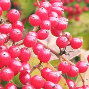 『結合』『私を無視しないで』。「結合」は、小さな白い花が半球状に集まって咲く様子に由来するといわれています。5~6月ごろ花を咲かせます。9~10月ごろに果実が赤く熟し、11月ごろには白い粉がふいて甘くなり、美味しくなります。